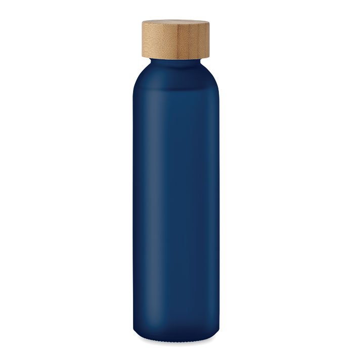 Glass bottle with frosted finish and bamboo lid. Leak-free. Capacity: 500 ml. Bamboo is a natural product, there may be slight variations in colour and size per item, which can affect the final decoration outcome.