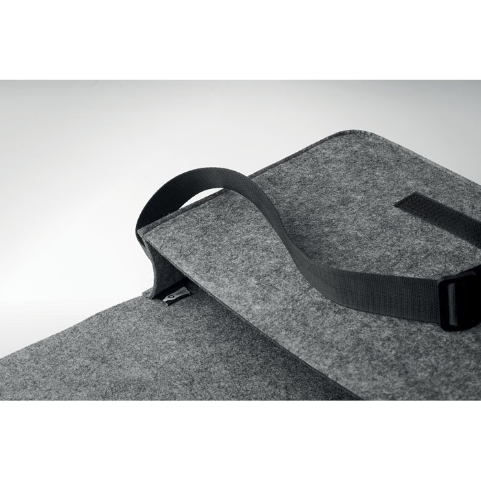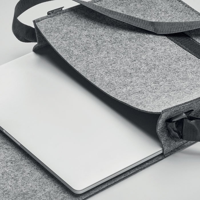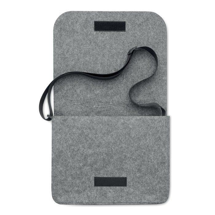 RPET felt messenger or laptop bag with hook and loop closure. Fits a 15 inch laptop.