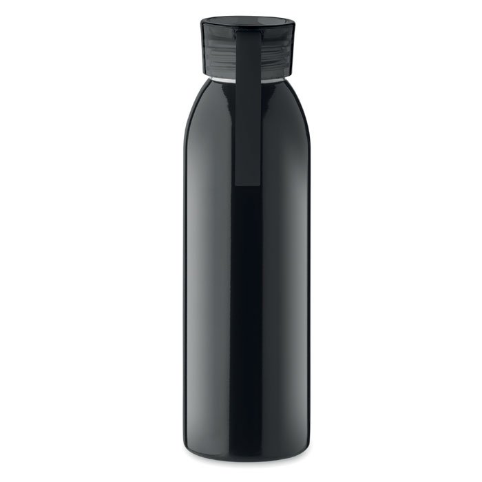 Single wall stainless steel bottle with PP lid and silicone hanger. Capacity: 650 ml. As this is a single walled bottle, heat transfer can still occur.