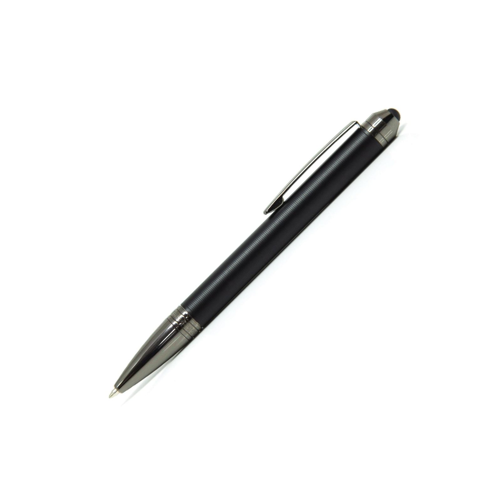 A luxury ballpoint pen with a sleek matt black brushed finish, accented by gunmetal details and a stylus tip. The silver undercoating on the barrel adds a touch of sophistication, making this pen both functional and stylish.