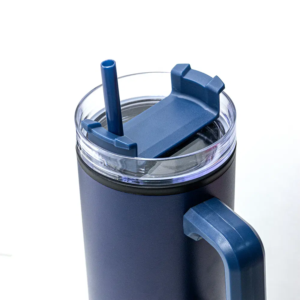 Blue tumbler with straw and side handle – bold, reusable, and made for everyday sipping.