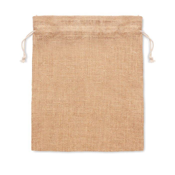 Small gift jute draw cord bag. Size approx. 14 x 22cm.