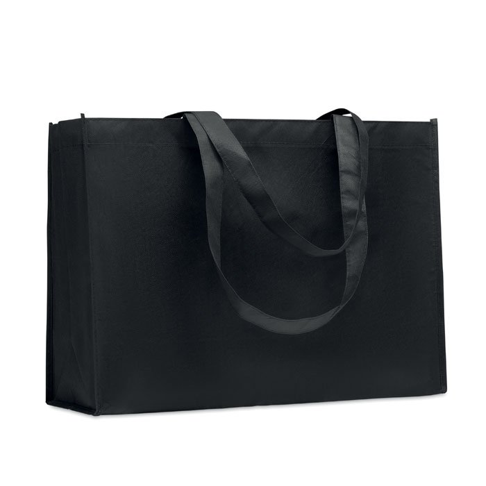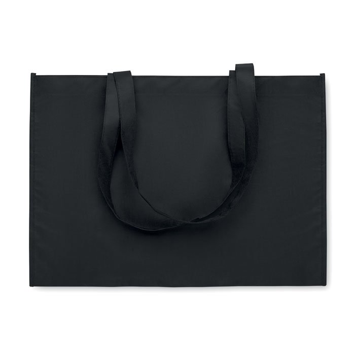 Shopping or beach bag in RPET non-woven with gussets and long handles. 80 gr/m?.