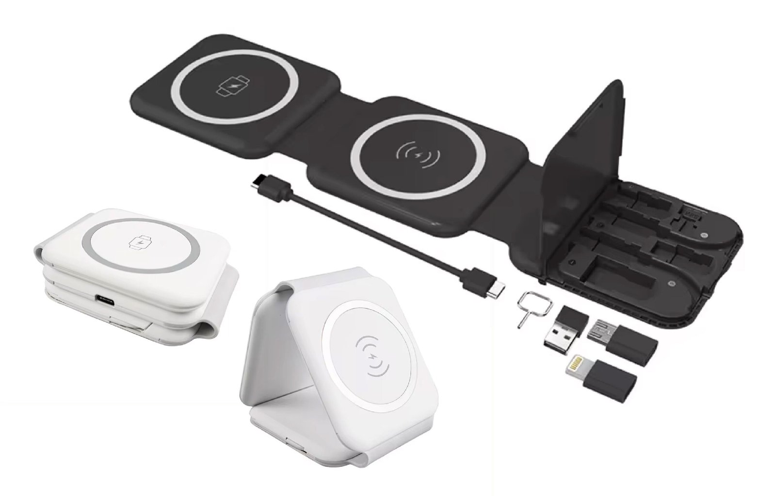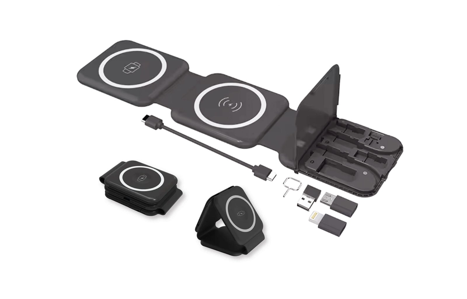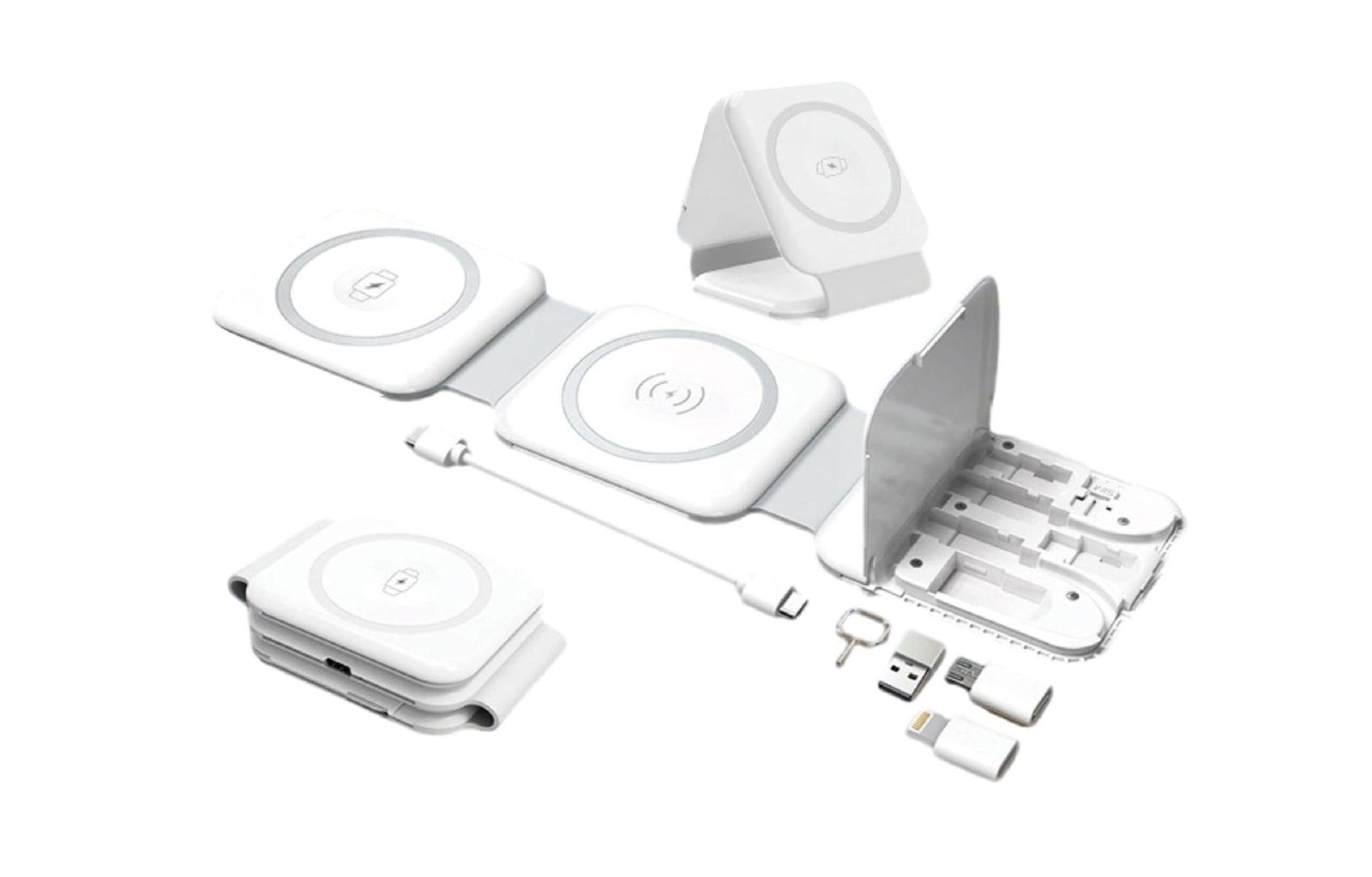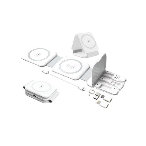 Our 10-in-1 MagSafe Wireless Charger powers your phone, Apple Watch, and AirPods simultaneously. Compact and foldable, it ensures fast charging and built-in safety features like foreign object detection.