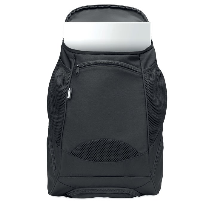 Multifunctional 600D RPET sports rucksack with several compartments (including padded compartment for paddle racket). Includes adjustable shoulder strap.
