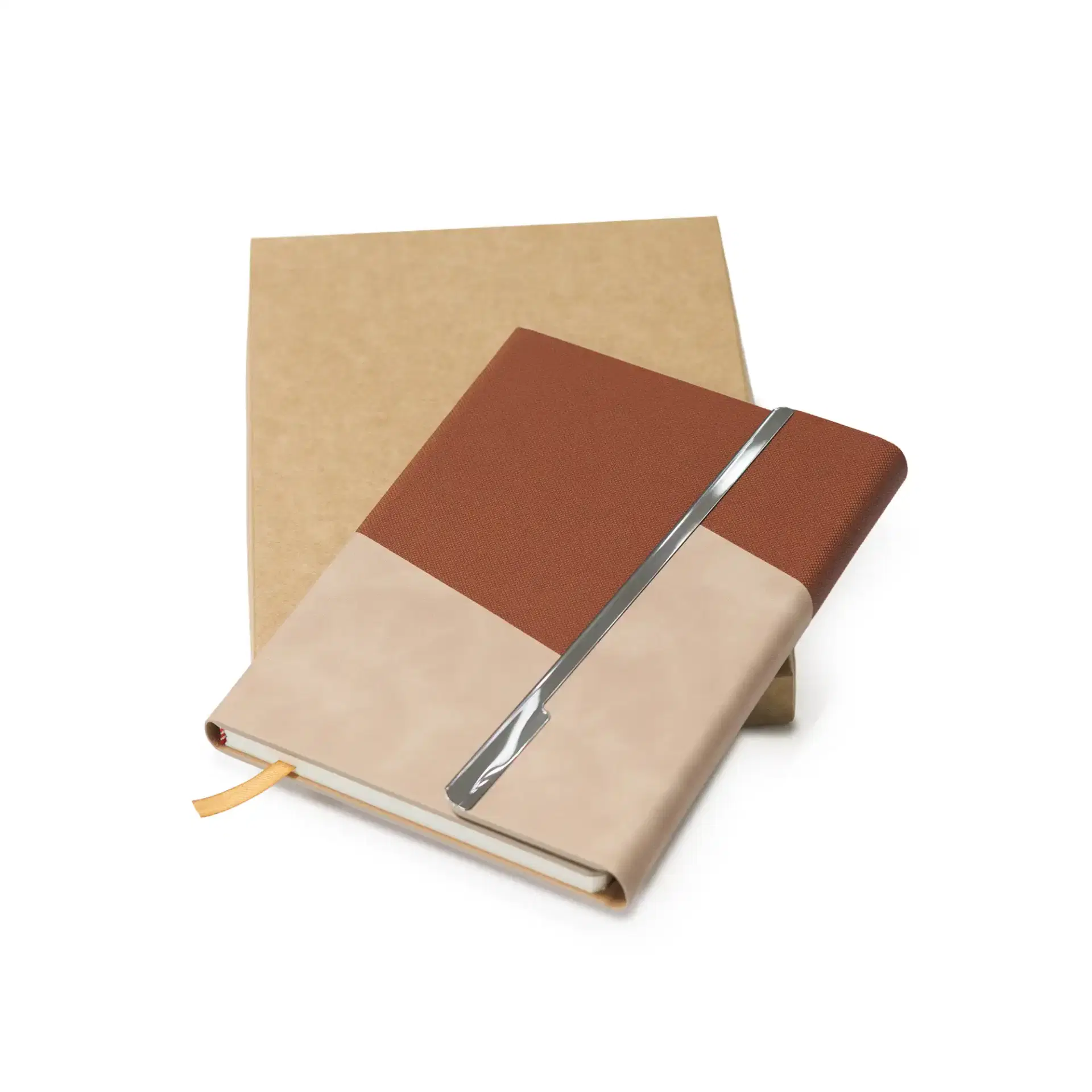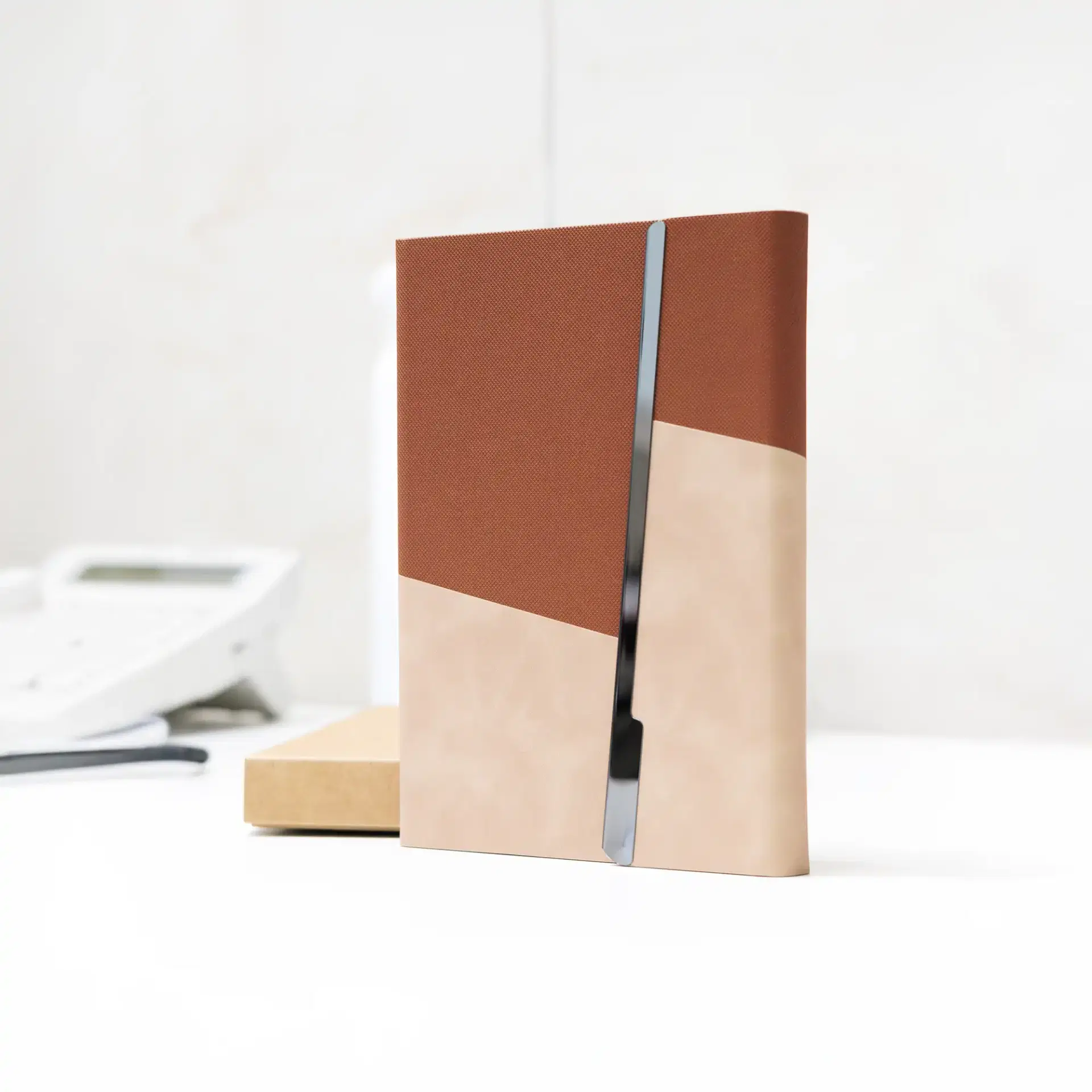 Premium A5 notebook with a two-tone PU cover and elegant metal foldable closure. Features 80 sheets of smooth 80gsm ivory paper, ideal for corporate gifting, branding, and everyday professional use.