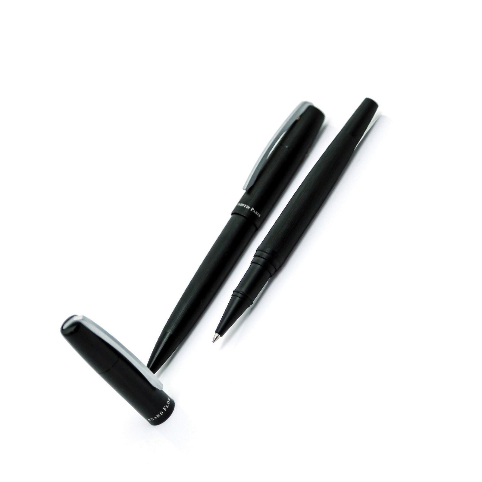 The Signature Elite is a high-quality roller and ballpoint pen brushed silver finish that contrasts perfectly with the rich matte black body.