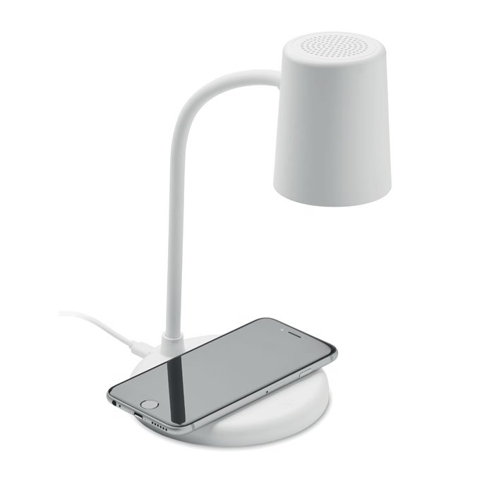 15W Wireless charging office lamp with 5.1 wireless speaker. It has adjustable light intensity with 3 types: day light, cold light and natural light. Touch activated on/off button. Output: DC5V/1A (5W).