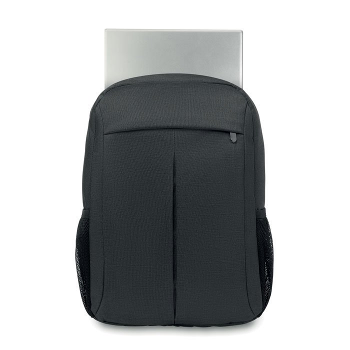 15 Inch computer backpack in 360D 2 tone polyester. Includes one internal 15 inch laptop compartment and one main front part with zipper pocket. Padded back and shoulder straps. Additional pocket for Tablet compartment. Trolley holder back side.