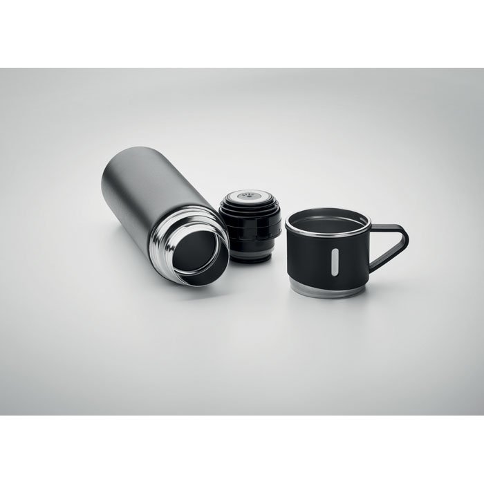Double wall stainless steel vacuum insulated flask with leak-free cup lid. Capacity: flask 420 ml, cup 150 ml.