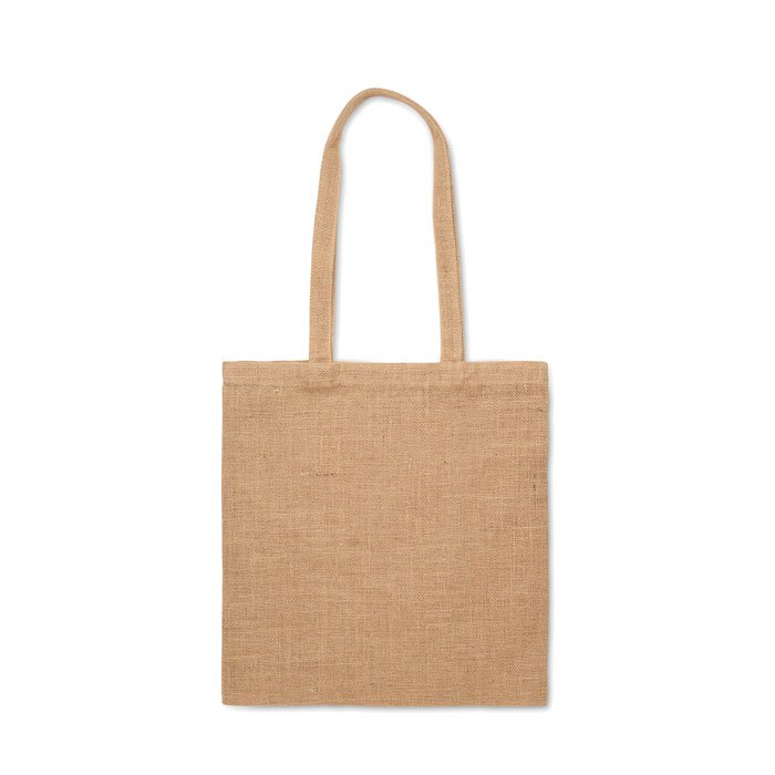 Jute shopping bag with long handles.